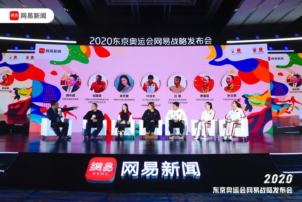 在互动访谈环节,女子混合泳奥运冠军、世界冠军叶诗文,男子混合泳世界环节汪顺,花样游泳奥运亚军、中国花样游泳队名将黄雪辰、孙文雁与网易东京奥运报道形象大使刘国梁、网易东京奥运报道星推官张天爱共聚一堂,展望东京奥运的赛场热情。体坛名将们纷纷对赛事饱含信心,并表示已经做好准备向最高领奖台发起冲击。