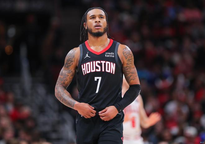 火箭队宣布了这场比赛的首发:杰伦-格林,狄龙,惠特摩尔,申京,阿门-汤普森。