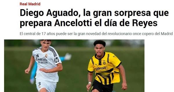 一月六日,据《马卡报》报道,17岁的皇马卡斯蒂亚中后卫阿瓜多可能是球队的惊喜发现,球员们将在国王杯上首次亮相并首发。