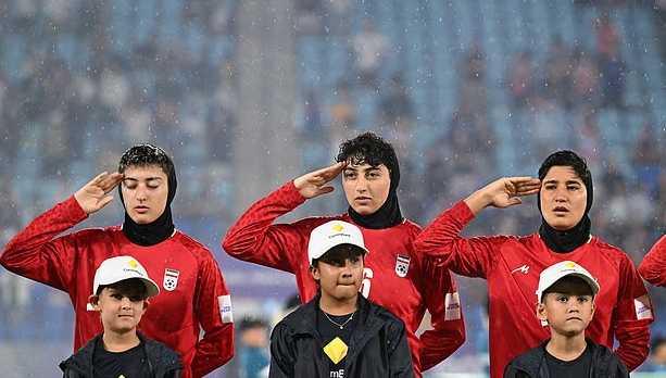亚洲杯首场比赛前,伊朗女足在唱国歌时保持沉默,这被解释为对伊朗现政权的无声抗议。但在第二场比赛之前,伊朗女足全体唱国歌,并集体敬礼军事仪式。这种巨大的行为对比令人惊讶。